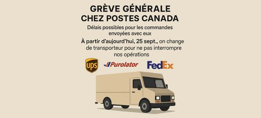✔️ À partir du 25 septembre, nous expédions nos commandes avec d'autres transporteurs afin de ne pas interrompre nos opérations.